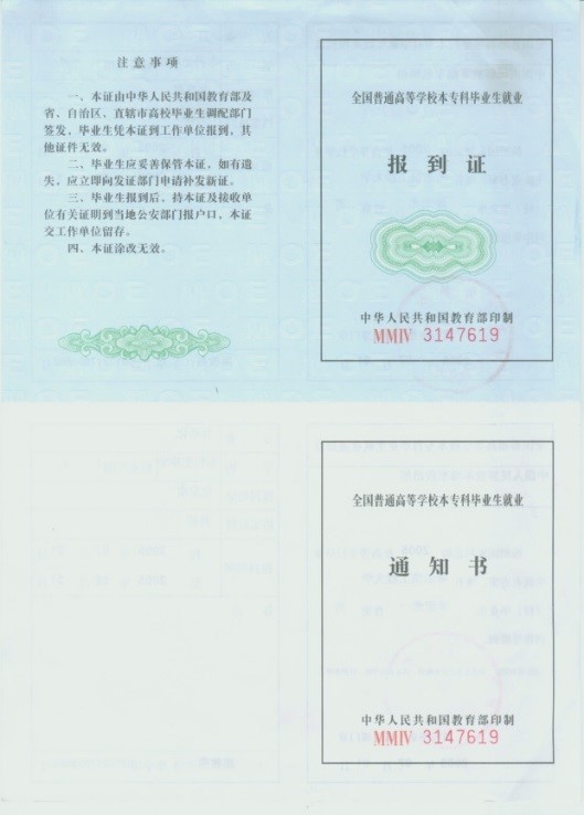 (4)是毕业生毕业资格的证明,《就业通知书》(报到证的下联)是存入个人档案的必备材料。