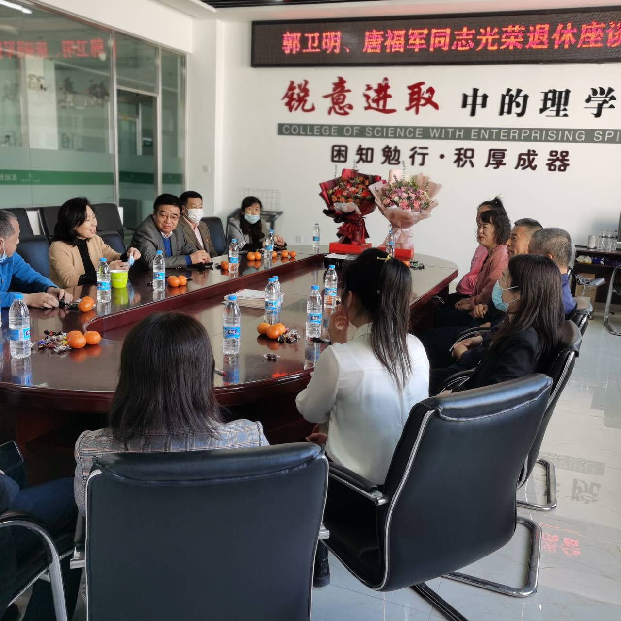 忠诚于人民的教育事业,勤勤恳恳,任劳任怨这正是退休教师及仍然坚守在岗位上的广大教职工的写照。院领导对他们为best365中国官方网站的发展做出的贡献表示衷心感谢,希望他们一如既往的关心与支持学校的发展,并对他们的光荣退休表示衷心祝福,为他们献上鲜花和荣退纪念品,参会教师与两位退休同志亲切交流,表达了深深的不舍和美好的祝福。