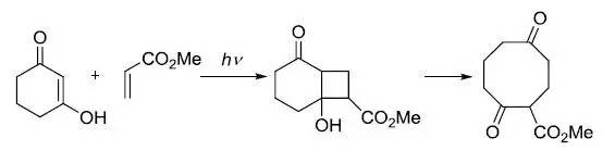 烯酮和烯烃进行[2 + 2]-光化学环加成后,进行反-羟醛缩合得到1,5-二酮的反应。