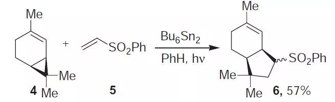 在自由基催化下,烯烃或炔烃和烯基环丙烷反应得到烯基环戊烷或烯基环戊烯的反应。