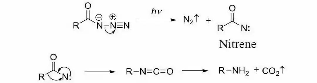 光照条件下也可以重排,酰基叠氮在光照条件下先生成氮宾,而后重排为异氰酸酯: