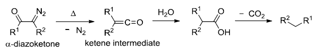α-重氮酮重排得到烯酮的反应。烯酮是非常重要的有机中间体。