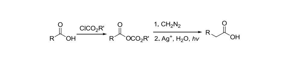 羧酸经过重氮甲烷处理得到多一个碳的同系物的反应。