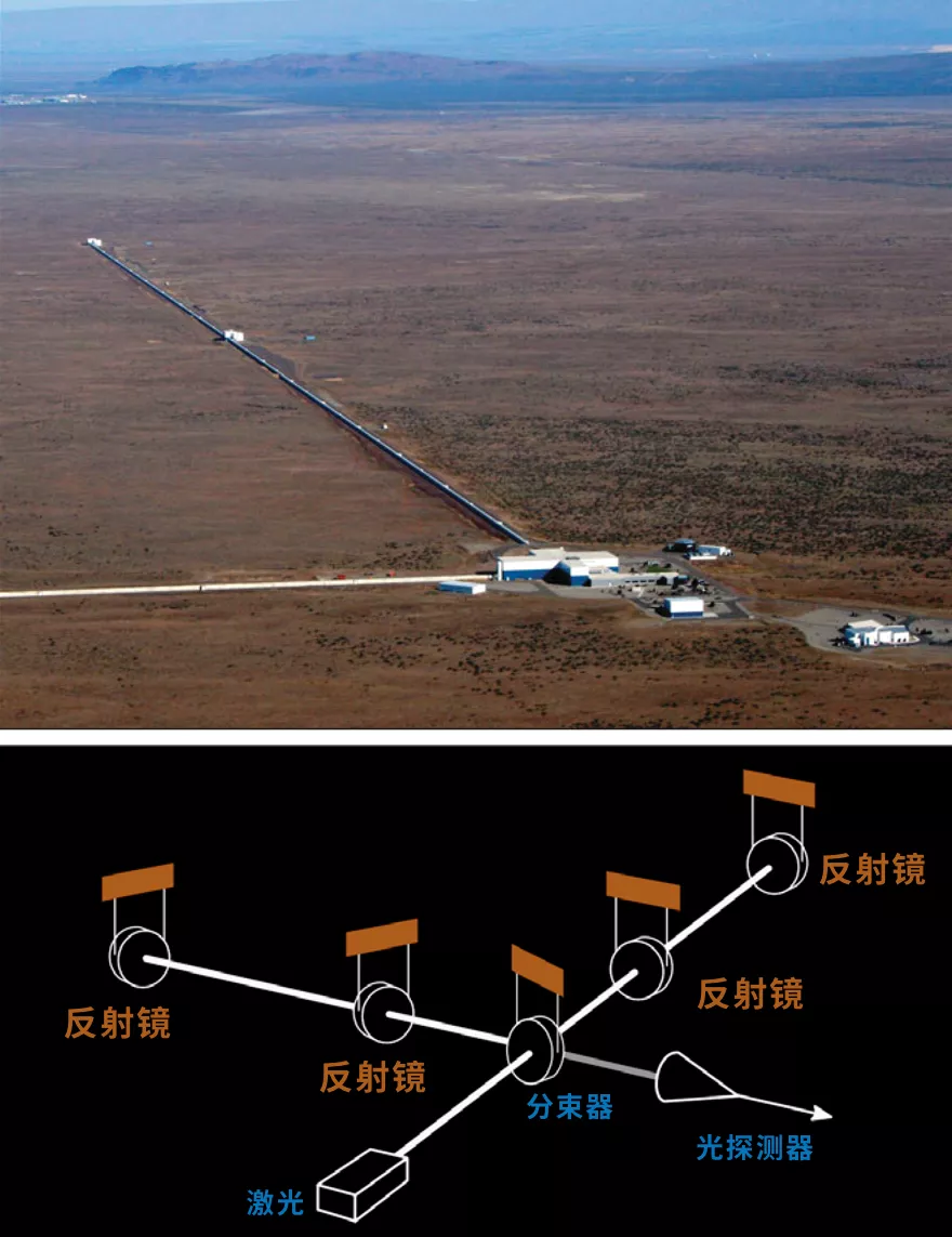 LIGO由位于美国不同地点的双干涉仪组成。每个干涉仪有两条长隧道,连接成L形,每条隧道两端都有一面重40千克的反射镜。LIGO使用激光探测引力波,激光沿着长隧道发射,在两对反射镜之间来回反弹,然后组合产生干涉图案。镜子之间距离的微小变化则显示为激光强度的波动。