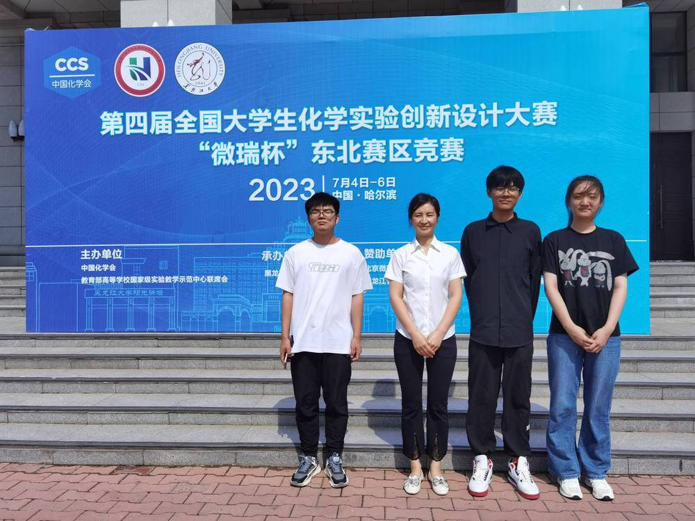 2023年7月4日-7月6日,第四届全国老员工化学实验创新设计大赛“微瑞杯”东北赛区竞赛在黑龙江大学举办,best365中国官方网站曹丽丽、丁冬雪两位老师指导的2021级应用化学专业李天明、张旭、李哲3名同学组成的“胶兵必败” 科普实验组,经过两天的紧张激烈竞赛,获得了东北赛区竞赛三等奖。