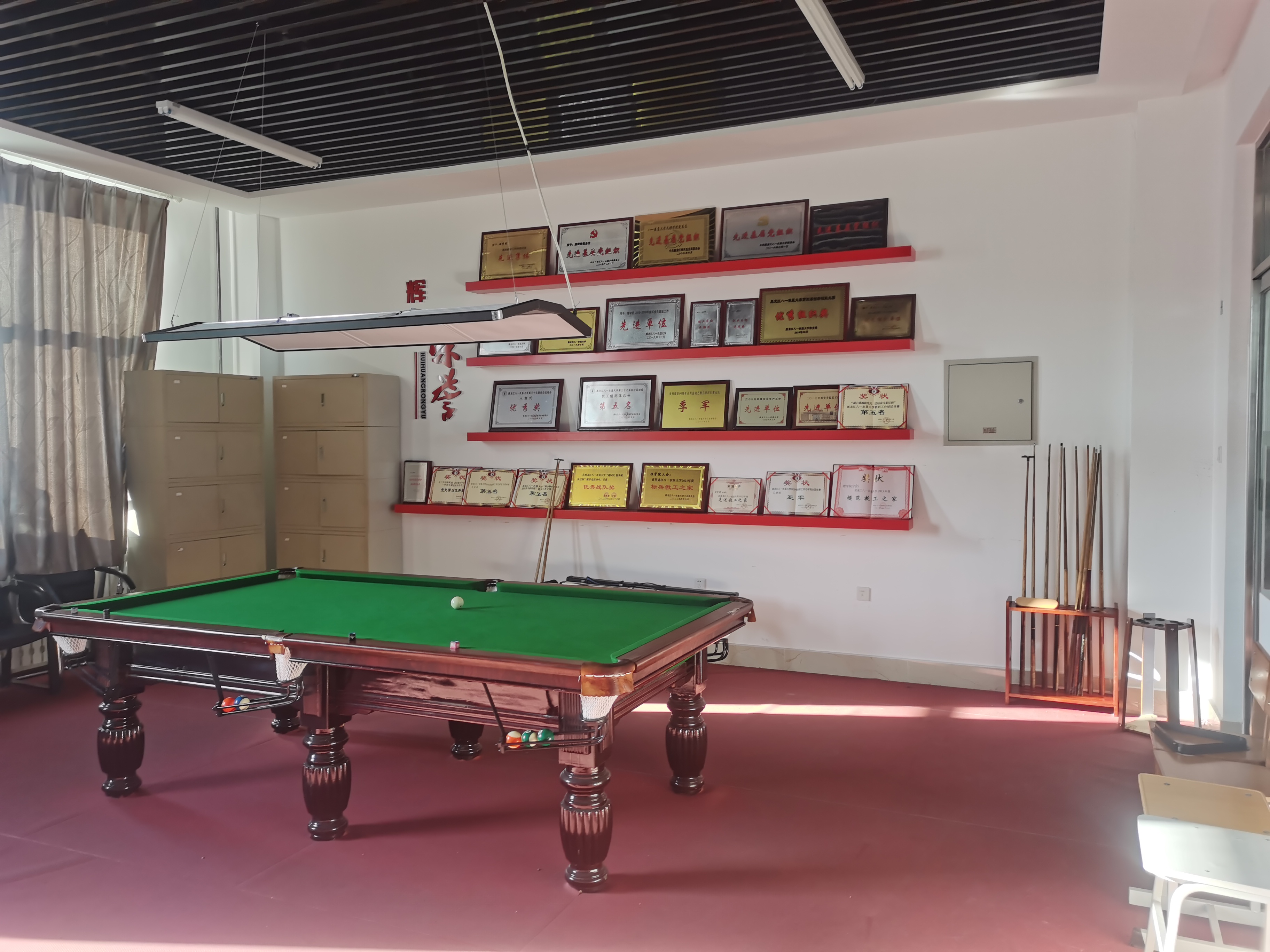 为了更好地服务广大教工,使教工在工作之余闲暇时能够放松身心,拥有更舒适的娱乐环境,经公司工会精心筹备和策划,近日为教工之家安装了台球架和台球灯。
