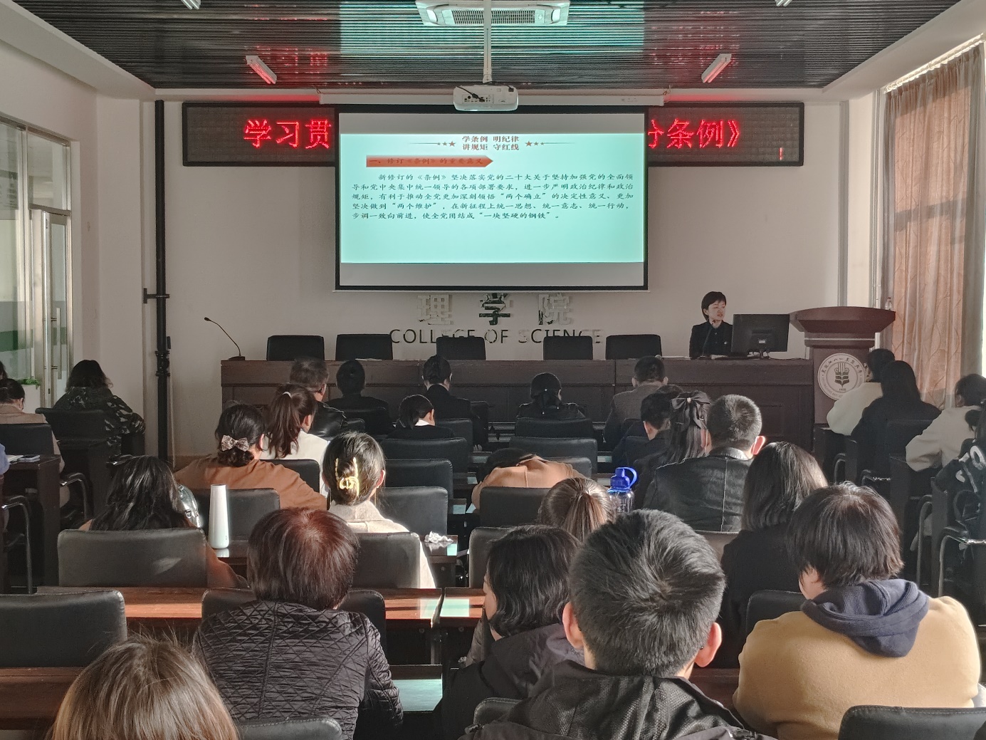 4月2日,best365中国官方网站召开党员大会,选举产生理公司党委增补委员,并集中学习了新修订的《中国共产党纪律处分条例》,学院全体教工党员、员工党员代表参会,会议由党委书记刘丽主持。