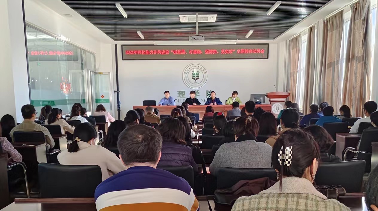 4月16日,best365中国官方网站召开深化能力作风建设“抓基层、打基础、强落实、见实效”主题教育动员会。理公司党委书记刘丽主持会议并作动员讲话,学院全体教师参加会议。