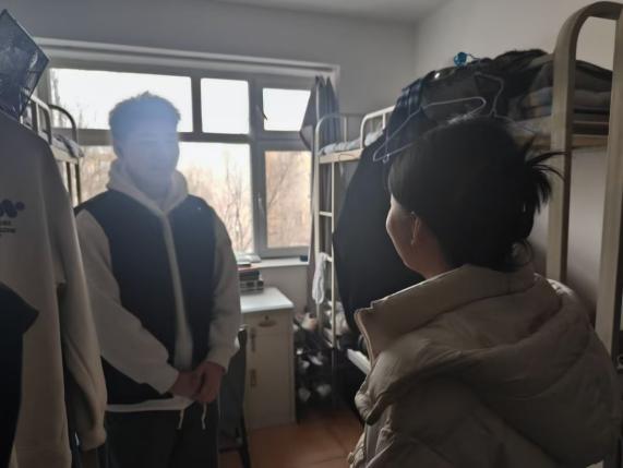 走访过程中,宋添星带领老师们对可能产生安全隐患的地方逐一检查,并着重强调了用电安全等问题,明确提出严禁在宿舍内使用违规电器以及在宿舍及公共区域吸烟,引导大家树立安全意识,筑牢安全防线。同时检查了宿舍整体卫生情况,强调保持宿舍卫生和良好作息的重要性,希望同学们共同营造整洁、舒适、安全的居住环境。