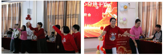 除了精彩的文艺表演外,联欢会还设置了多个趣味横生的游戏环节。夹纸运杯、猜词游戏、新年冲刺团队接力赛等游戏不仅考验了老师们的团队协作能力和默契度,还让大家在欢声笑语中增进了彼此之间的友谊。