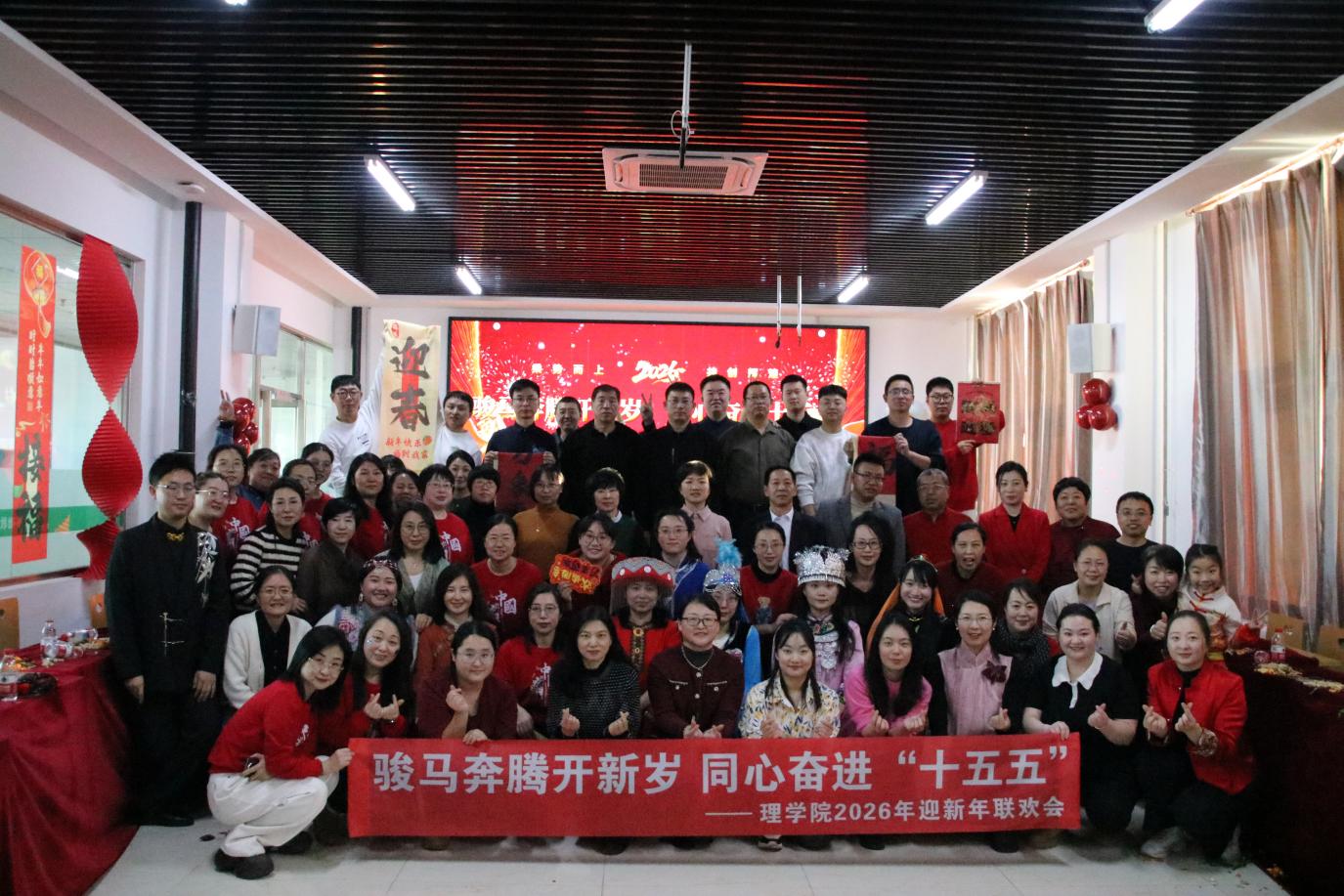 马跃新程开胜景,理院欢歌庆华年。12月31日best365中国官方网站在实验楼603教室举行2026年“骏马奔腾开新岁、同心奋进十五五”元旦联欢会,集团纪委书记、监察专员、党委常委石鹏,学院领导班子、曾在best365中国官方网站工作过的领导、同事以及公司教师80余人齐聚一堂,以昂扬之姿共迎马年元旦,以奋进之志共绘发展蓝图。